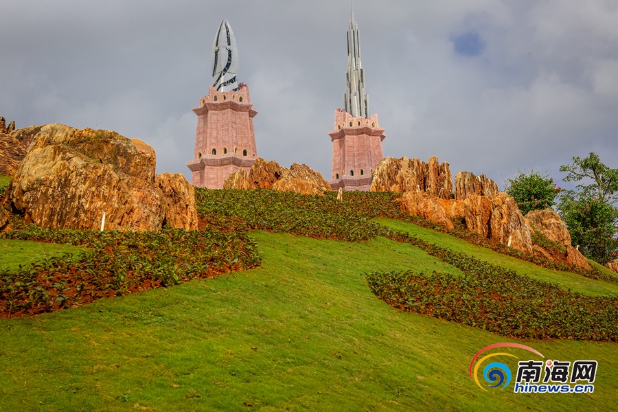 遠遠望去,長影海南“環球100”電影主題樂園像個童話的世界。海報全媒體中心記者袁琛 攝