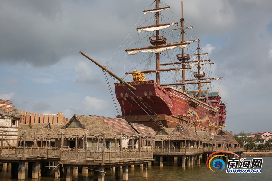 長影海南“環球100”電影主題樂園的鄭和寶船內模擬下西洋時的波瀾壯闊超酷炫。海報全媒體中心記者袁琛 攝
