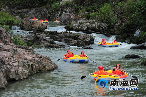 “改革開放看海南”2018年全國融媒體海南行大型采訪活動走進紅峽谷景區,開啟了一場兼具速度與激情的漂流體驗。南海網記者 沙曉峰 攝