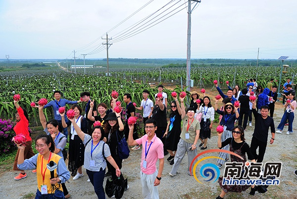 11月29日,網(wǎng)媒記者在火龍果基地合影留念。南海網(wǎng)記者沙曉峰 攝