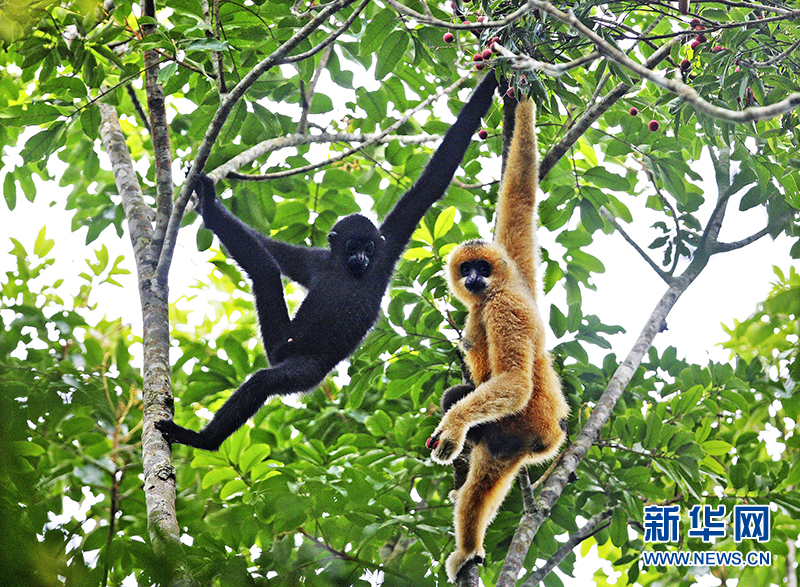 生長(zhǎng)的昌江霸王嶺的海南長(zhǎng)臂猿。新華網(wǎng)發(fā)(吳建華 攝)