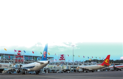 飛機停靠在三亞鳳凰國際機場。近年來,三亞不斷加大對國際客源市場的開拓力度,逐步形成“4小時、8小時、12小時”國際航程旅游圈。(資料圖片)