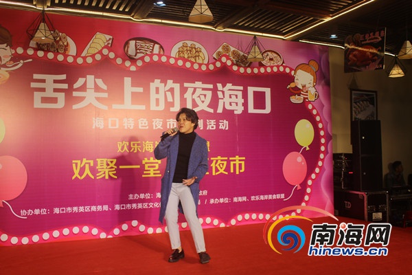 活動現場,歡樂海岸美食聯盟常務副總經理楊東華為現場觀眾推介歡樂海夜市。歡樂海岸美食聯盟是由海南新寶島餐飲管理有限公司傾力打造的,集特色餐飲、海洋產品深加工、原生態種養食材基地、漁業合作發展等多產業全新模式的連鎖品牌企業,于2015年9月26日開業,樓高6層,總建筑面積約35000平方米,設有海南家宴、潮汕家宴、海天一色、老廣州茶點、潮牛火鍋和宵夜大排檔等6大門店,各門店菜品風味各異,特色明顯。