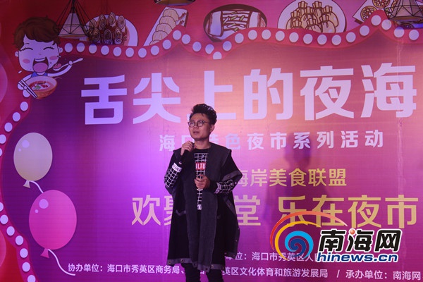 歡樂海岸美食聯盟常務副總經理楊東華為現場觀眾推介歡樂海夜市。南海網記者馬偉元攝