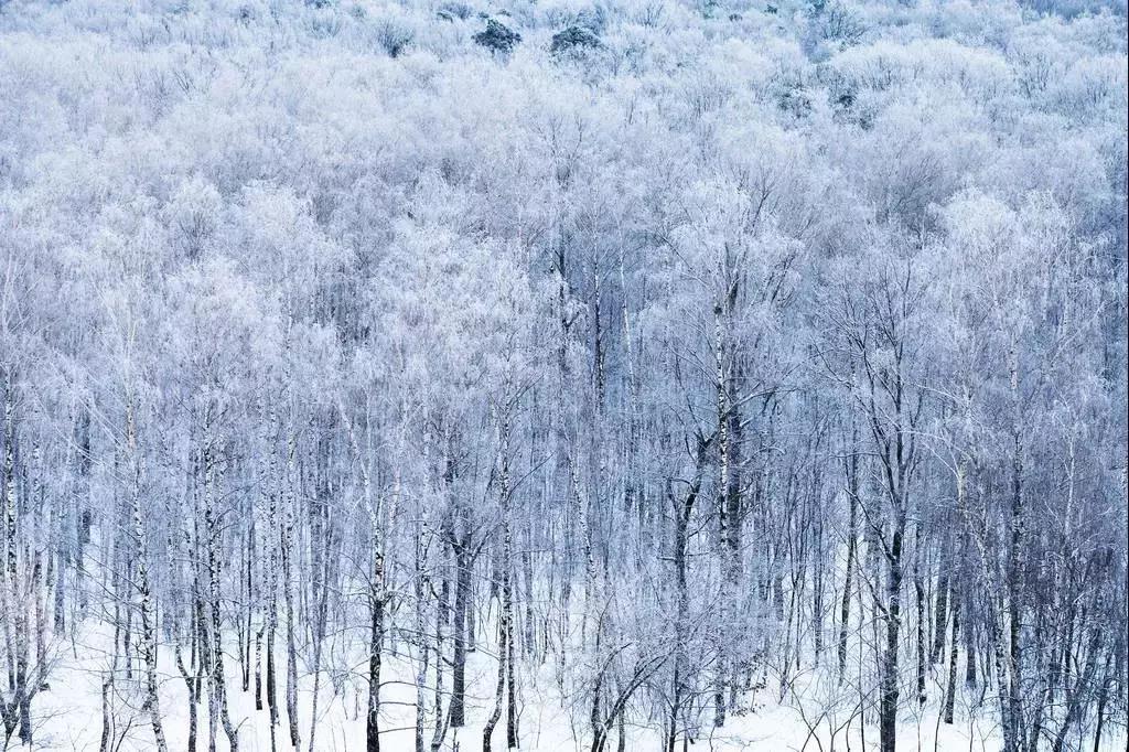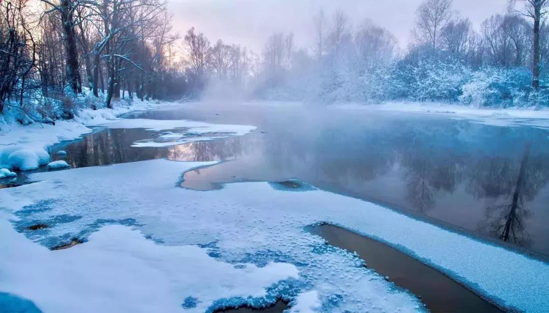 那氤氳的水汽,晶瑩的霧凇,在這漫天雪白的世界里,天地都仿佛沒有了喧囂。