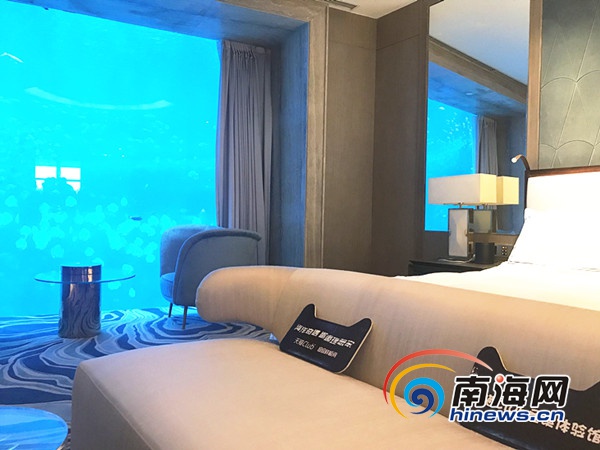 走進客房透過臥室和浴室中的落地窗,可以欣賞到大使環礁湖的曼妙景致。南海網記者劉麗萍攝