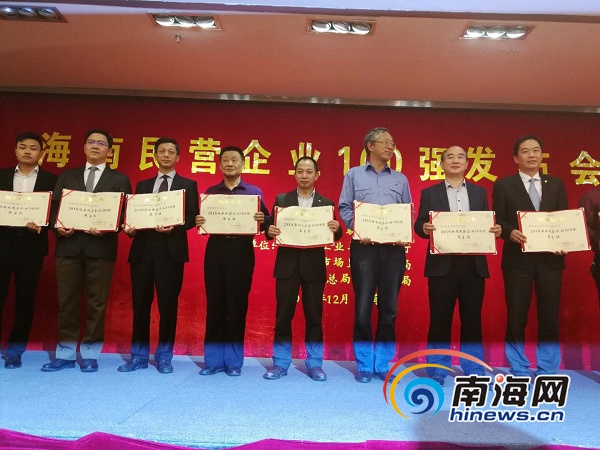 會議發布了2018海南民營企業100強榜單,為入選2018海南民營企業100強的企業現場頒發證書,并發布2018海南民企100強分析報告。