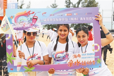 2018年11月25日,2018年第三屆海南國際旅游島(陵水)青年狂歡節(jié)在陵水清水灣開幕,圖為游客在合影。 本報(bào)記者 武威 通訊員 胡陽 攝