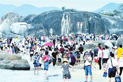 天涯海角景區(qū)游人如織。本報(bào)記者 胡擁軍 攝