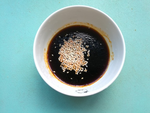 7.豆皮牛肉卷蒸制期間我們先來挑一個蘸汁。取一個小碗,放入適量的香醋、生抽、香油、少許白糖再放入幾粒炒熟的白芝麻,攪拌均勻,蘸汁就做好了。隨同豆皮牛肉卷一同上桌即可。