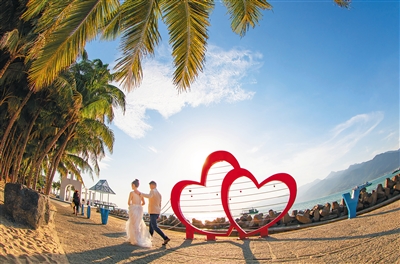 旖旎瓊島,因秀美風光、唯美傳說,被溫馨浪漫的甜蜜文化縈繞,助推著婚慶產業的發展。海南婚紗攝影機構眾多,各大景區、酒店也紛紛為新人、情侶、家庭提供旅拍等個性服務。新年伊始,北國已入寒冬,而海南正是氣候溫暖、風景如畫的好時節,新人、情侶不妨在享受休閑假期的同時,用生動影像記錄甜蜜瞬間。