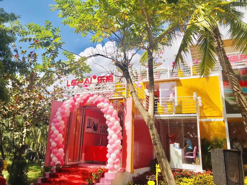據介紹,位于天涯海角游覽區景觀大道旁的樂拍攝影集裝箱創意空間,既是門店,也是風景。門店一樓為接待中心和化妝區,二樓為服裝區,三樓是創意休閑區和辦公區,樓頂為“天空之鏡”網紅打卡點。建筑整體以粉色為主色調,采用目前最潮的網紅店設計理念,裝修風格時尚,配套齊全,為景區新增一處時尚靚麗的風景。