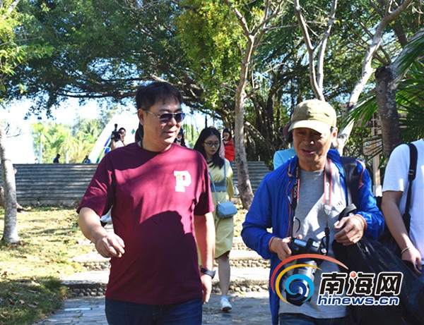?高亞麟(左一)與同行攝影師交流。南海網記者 劉麗萍 攝