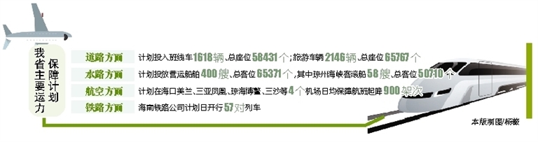 對于今年春運,我省各級交通運輸、鐵路、民航部門和企業(yè)積極預(yù)測客運需求和流量流向變化,制定完善運輸方案,統(tǒng)籌安排運力資源。主要運力保障計劃如下:道路方面,我省計劃投入班線車1618輛、總座位58431個,旅游車輛2146輛、總座位65767個,并儲備旅游應(yīng)急車輛432輛、總座位15213個,公交車4739輛,巡游出租車7632輛,網(wǎng)約出租車8500輛;水路方面,計劃投放營運船舶400艘、總客位65371個,其中瓊州海峽客滾船58艘(抗風(fēng)能力達到8級的船舶48艘)、總客位50710個、2771個車位;鄉(xiāng)鎮(zhèn)渡船39艘、總客位757個;旅游客船303艘、總客位13904個;航空方面,計劃在海口美蘭、三亞鳳凰、瓊海博鰲、三沙等4個機場日均保障航班起降900架次,并積極申請春運期間加班計劃,預(yù)計全省最多可增加航班4816架次,增加座位數(shù)814108個;鐵路方面,海南鐵路公司計劃日開行57對列車,日均運輸7.2萬人,同比增長6%。