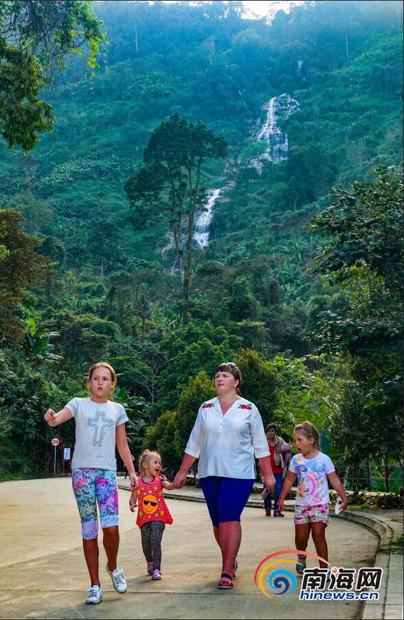 在瓊中黎族苗族自治縣百花嶺雨林文化旅游區,優美的山水風景吸引很多外國游客來游玩度假。 海報集團全媒體中心記者 元才 通訊員朱德權 秦海靈 攝