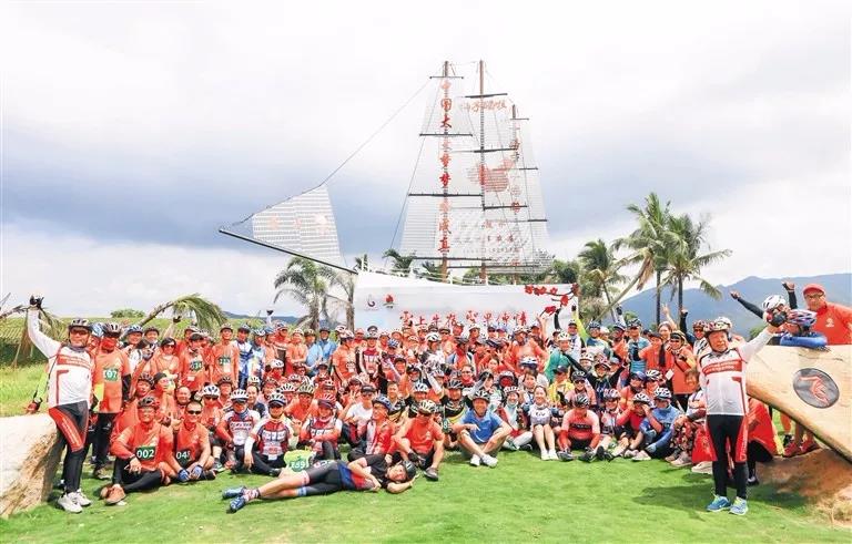 ↑海南以歡樂節(jié)和鄉(xiāng)村旅游文化節(jié)為平臺,帶動鄉(xiāng)村旅游扶貧。圖為參加二○一八年海南鄉(xiāng)村旅游文化節(jié)美麗鄉(xiāng)村綠色騎行活動的騎友合影。 武昊 攝