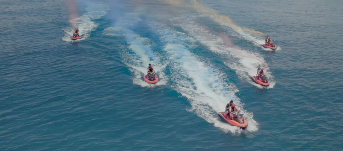 蜈支洲島版本的《航空安全須知》是一支在國(guó)內(nèi)不多見(jiàn)的海島游+安全知識(shí)融合的宣傳片,與傳統(tǒng)航空安全須知視頻相比,頗見(jiàn)創(chuàng)意與用心。宣傳片中令人印象深刻的是島上的海上娛樂(lè)項(xiàng)目:駕駛大馬力的動(dòng)感飛艇在海上滑行、漂移,體驗(yàn)浪花的飛濺與澎湃;被拖傘帶到20米的高空,遠(yuǎn)眺青山、低俯碧波;穿戴水肺潛水裝備感受海底世界,化身一條自由的魚,享受靜謐美麗、五彩斑斕的海底世界,與熱帶魚來(lái)一場(chǎng)靈魂互動(dòng)。