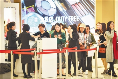 ?市民游客在位于海口市日月廣場的海口免稅店選購商品。本報(bào)記者 袁琛 攝