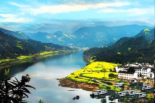 新安江是歙縣的母親河,是古徽商到蘇杭討生活的黃金水道。“舟行碧波上,人在畫中游。”畫里青山,水中鄉村,構成一幅美妙的山水國畫。