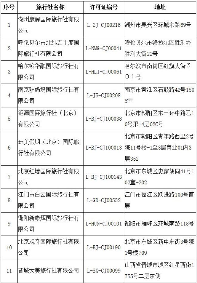 根據(jù)《旅行社條例》和《中國(guó)公民出國(guó)旅游管理辦法》,自2019年2月28日起,注銷以下4家旅行社的旅行社業(yè)務(wù):