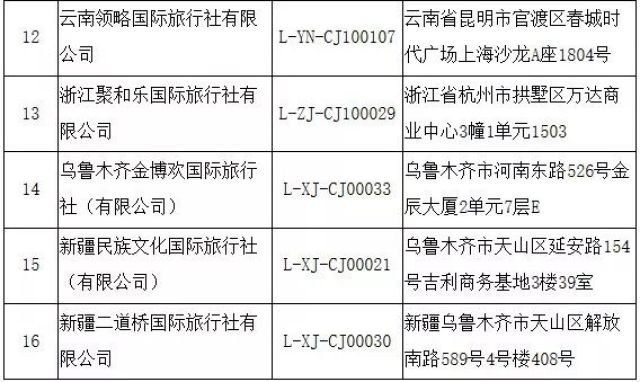 根據(jù)《旅行社條例》和《中國(guó)公民出國(guó)旅游管理辦法》,自2019年2月28日起,取消以下16家旅行社的經(jīng)營(yíng)出境旅游業(yè)務(wù):