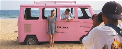“在這里隨便一拍就是一張大片,我太喜歡這里了?!比涨?,陜西游客郭佳妮與朋友來海南度假,打卡呆呆島是她們的計劃行程之一。“我經常在‘小紅書’APP看到呆呆島,它現在是網紅地,很多人專門來這拍照打卡。”郭佳妮說。站在車外、躲進車里……郭佳妮和朋友解鎖各式各樣的拍照姿勢,你擺我拍,不亦樂乎。不一會兒,色彩清新而又趣味十足的照片就成為她們刷屏的利器。
