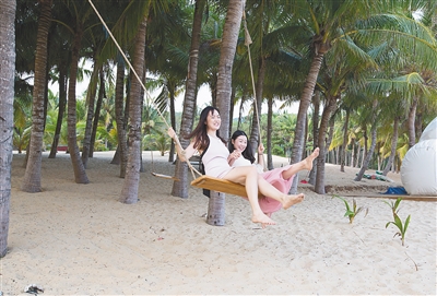 游客在呆呆島蕩秋千。 本報記者 武威 攝