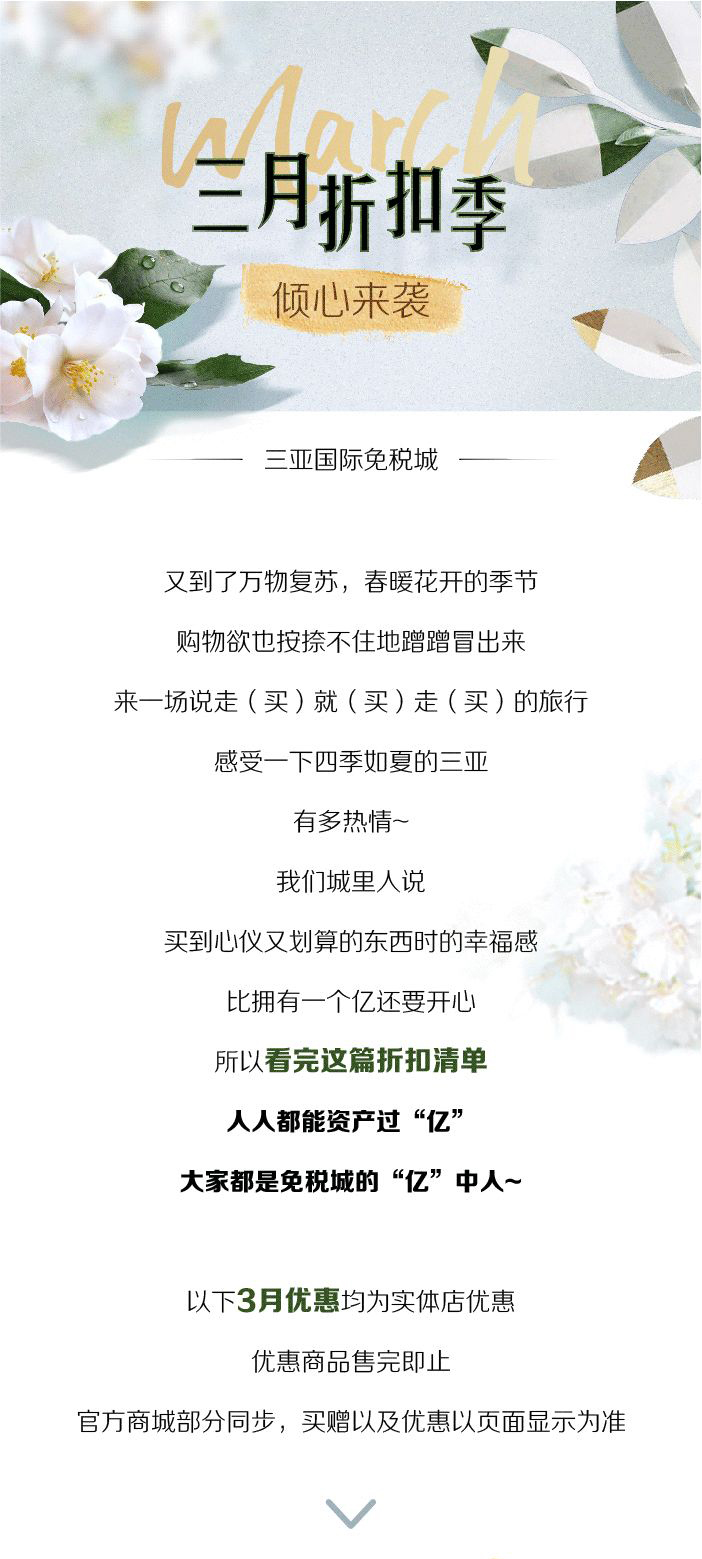 免稅城三月折扣瘋狂來襲!春風十里不如盤你