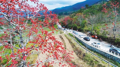 昌江七叉鎮寶山村的木棉吸引了許多游客。 海南日報記者 蘇曉杰 通訊員 楊耀科 攝
