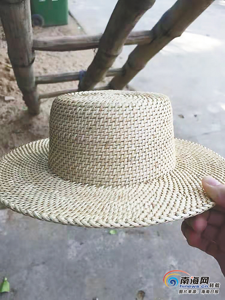 黃青華將黎族傳統(tǒng)工藝與現代元素相結合的藤編帽子。