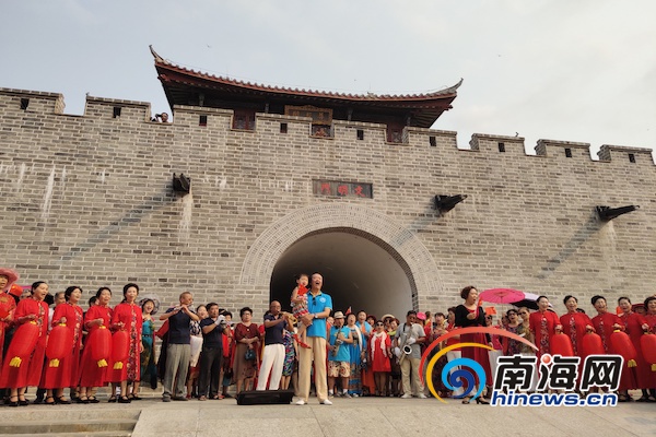 3月14日上午,三亞崖城村在崖州古城開展以“我和我的祖國”為主題的快閃文藝演出。 南海網記者 劉子榕攝