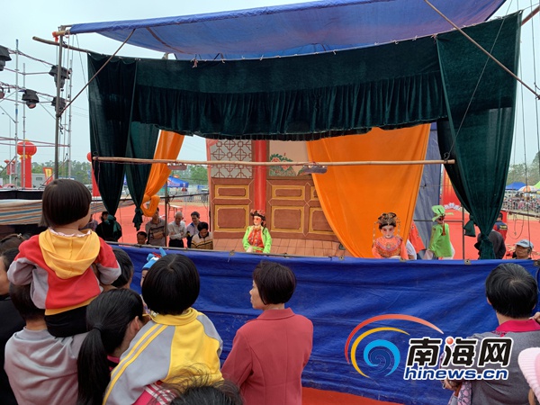 “我自己本身也是做民俗音樂的,海南八音的曲調元素十分豐富,激發了很多創作靈感。”來自陜西的游客高波是一名民俗音樂作曲家,在聽到海南八音的現場演奏后他感慨地說。而在舞臺一邊,“咚鏘、咚鏘……”一陣歡快的鑼鼓拉開了公仔戲演出的序幕,臺上的公仔惟妙惟肖,幕后的演員唱腔雍容花俏,臺下的觀眾聽得聚精會神。海南公仔戲又稱木偶戲、手托木頭戲,是海南省具有地方特色的傳統戲曲表演藝術品種之一,2008年入選為第二批國家級非物質文化遺產保護名錄,深受當地群眾的喜愛。
