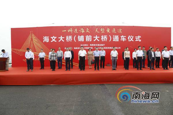 南海網、南海網客戶端???月18日消息(南海網記者 胡麗齊)3月18日上午9時,海南海文大橋(鋪前大橋)舉行通車儀式,正式更名為海文大橋,計劃今天下午3時正式通行。大橋通車后,從文昌鋪前到??诘穆烦虒⒂稍瓉淼囊粋€半小時縮短至約二十分鐘。據悉,該項目自2015年開工建設,計劃于2019年10月10日建成通車,比原計劃提前7個月。