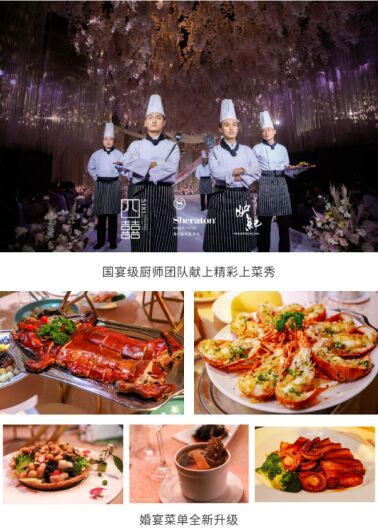 還擁有室內(nèi)、戶外七大婚禮舉辦場地,專業(yè)的婚禮管家服務(wù)團(tuán)隊和國宴級廚師團(tuán)隊,為客人的婚禮保駕護(hù)航。除了可以選擇在酒店的場地承辦婚禮,同時酒店也可以走出去,承辦桌數(shù)高達(dá)80-100桌的大型宴會服務(wù)。