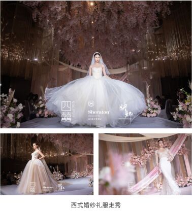在婚禮秀現(xiàn)場,準(zhǔn)新人們近距離欣賞到一場別開生面的中、西式婚紗禮服走秀,體驗身臨其境的婚禮預(yù)演,感受酒店一站式服務(wù)的貼心與細(xì)致。精致典雅的桌席與高端的婚紗禮服設(shè)計,為準(zhǔn)新人們打造無與倫比的婚禮盛宴。