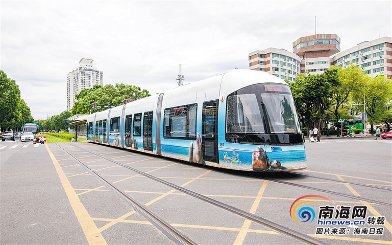 流線型車頭、藍色的色調、寬敞的空間……目前已向廣大市民游客開放試乘體驗的三亞有軌電車很是“拉風”,軌道之間鋪設的草坪凸顯出三亞的熱帶氣息。對于乘坐動車到三亞的游客來說,出站之后坐上有軌電車,到解放路下車,就能散步到三亞灣感受椰風海韻,十分方便。