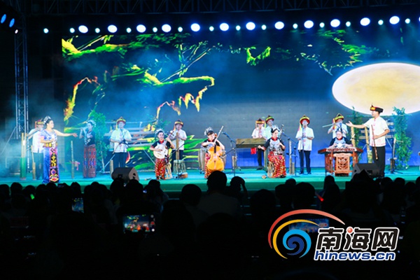 4月7日晚,五指山市在三月三廣場舉行主題文藝晚會,一個個極具民族特色的精彩節目吸引了眾多市民游客前來觀看。南海網記者 葉子青 攝