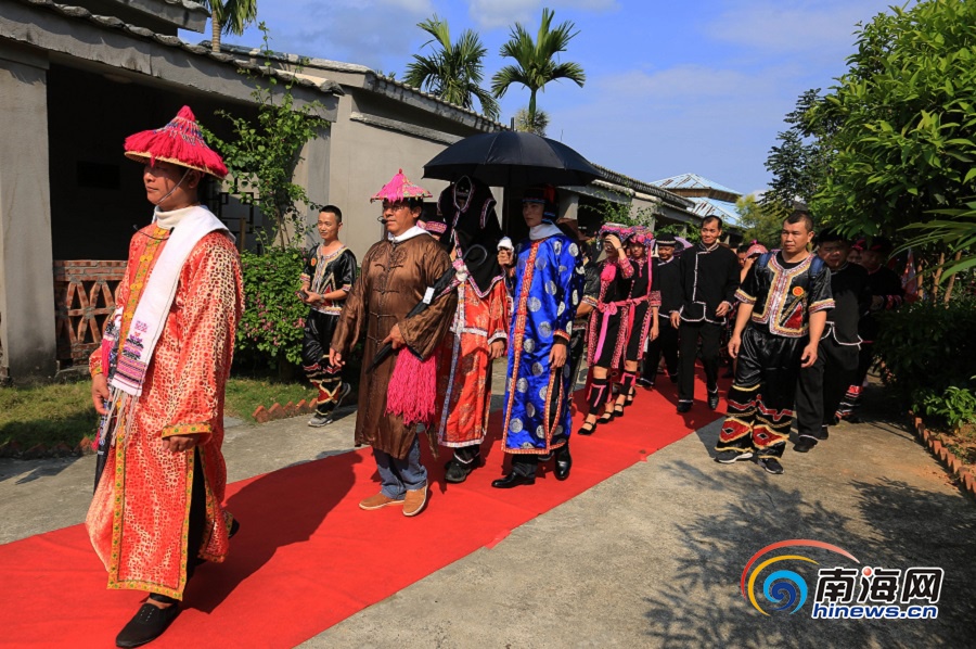 南海網、南海網客戶端瓊中4月13日消息(南海網記者 李昊 通訊員 陳澤汝 林學健)“敲起鑼鼓,出發迎親嘍!”4月13日,在瓊中黎族苗族自治縣云湖鄉村旅游度假區,50對情侶身著艷麗的苗族婚禮服飾,體驗了當地特色的苗族婚俗。