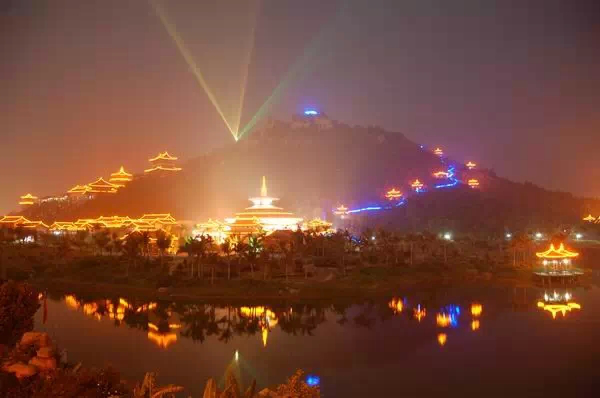 這是定安文筆峰盤古文化旅游區(qū),這里的夜景也是一絕,絕對讓你驚艷。