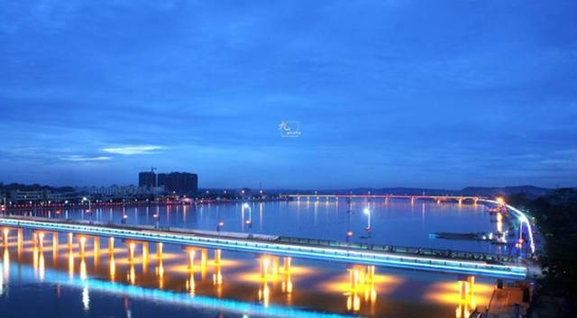 這是陵水夜幕下的陵水河和椰林大橋。椰林大橋很有世紀大橋的風(fēng)范,在陵水這座小城,是很亮眼的夜景。
