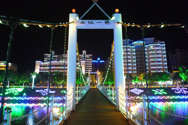 瓊中的夜景,很美!在這么美妙的夜晚,牽著TA的手,走在百花廊橋中,沉浸在曼妙的夜色里……