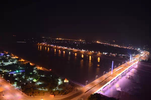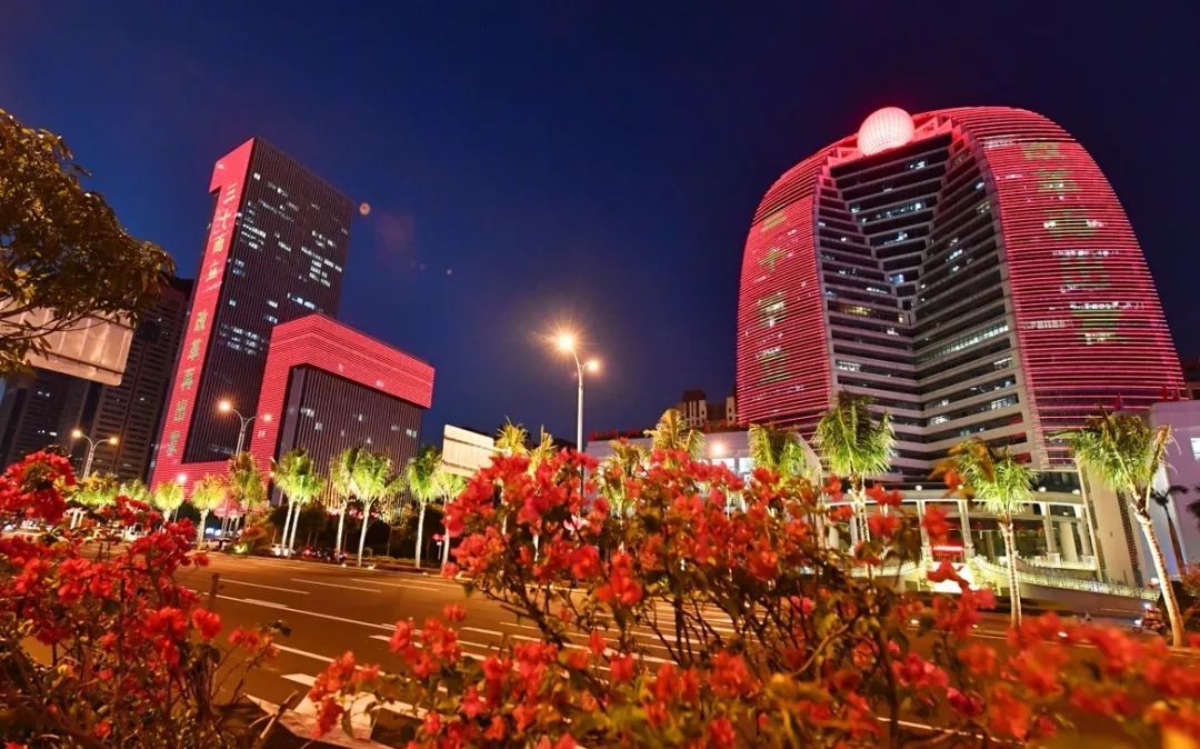 ▲圖為濱海大道樓宇亮化后的美麗夜景 石中華 攝