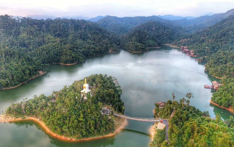 神玉島環(huán)湖而建,山水相依,是海南熱帶生態(tài)雨林的腹地,擁有山地湖泊、原始熱帶生態(tài)雨林、千年荔枝樹、森林溪谷、億萬年活化石-桫欏叢林和桃花水母等自然奇觀。依托碧玉湖和周邊熱帶山地雨林而建,為水庫型水利風景區(qū)。