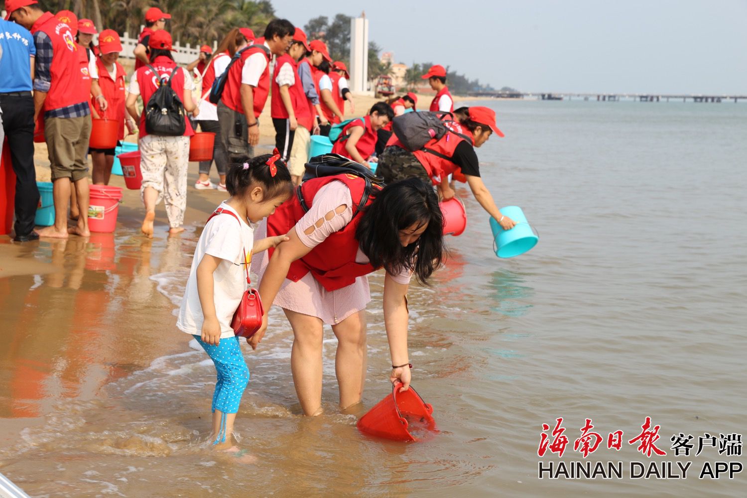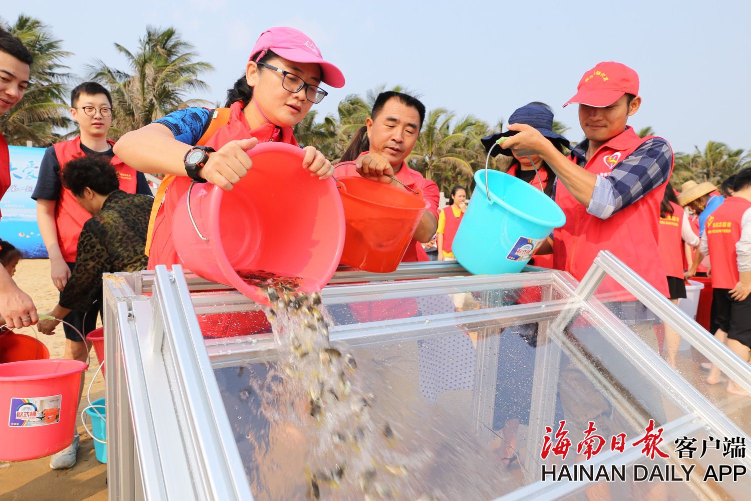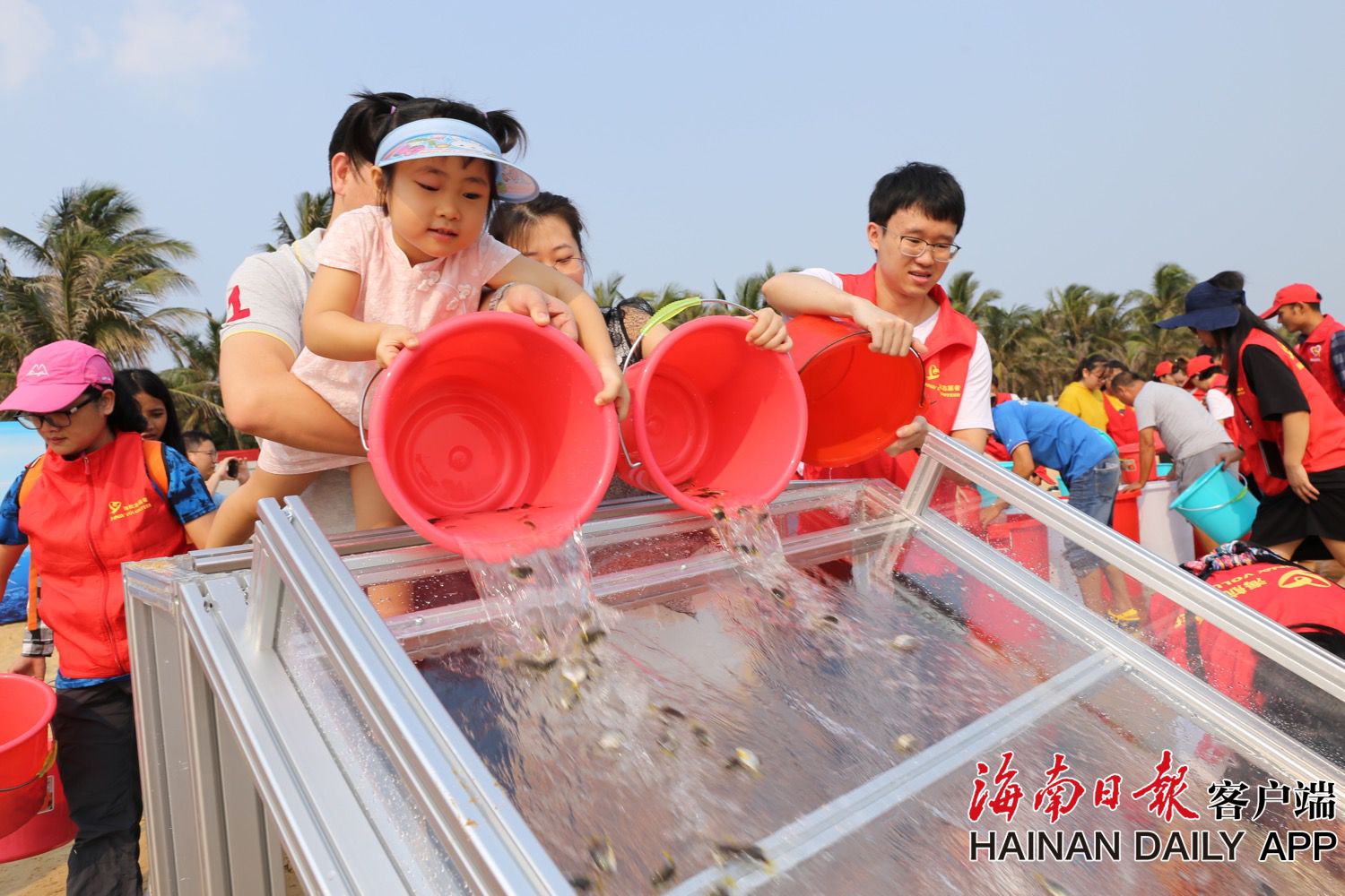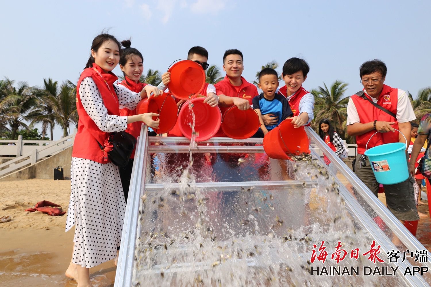 2019年4月20日,在海口市西秀公園海灘,參加“感恩海洋·大愛海南——海航志愿者在行動” 增殖放流主題公益活動的志愿者將兩萬余尾小魚苗陸續放歸大海。 據了解,每年五月至七月期間,是海南的休漁期,也是海洋生物茁壯成長的時期。此次活動將慈善和環保相結合,旨在向社會各界人士發出保護海洋的倡議,維護海洋生態平衡,傳遞海洋環保知識,呼吁大家呵護海洋生物、關注海洋生態。以實際行動踐行“綠水青山就是金山銀山”的綠色發展理念。(據海南日報客戶端|記者 張茂 攝)