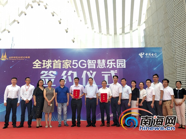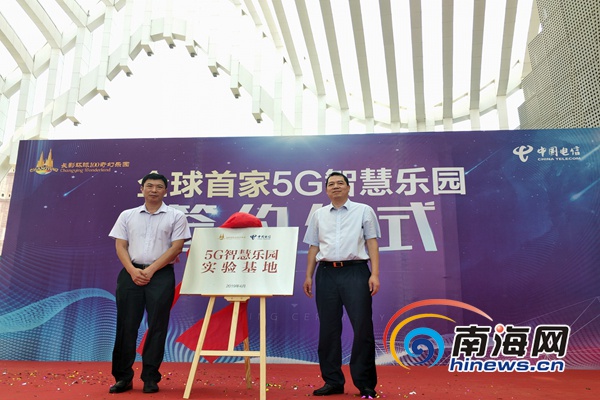 4月20日, 中國電信海南公司、長影環球100奇幻樂園簽約,標志著全球首家5G智慧樂園落地。南海網記者 孫令正攝