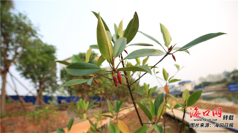 2017年3月,美舍河長堤路示范段首次種下紅樹,昔日城中“稀客”,如今在城中安了家。此后,海口在美舍河下游長堤路至國興大道示范段,根據每個地段鹽分、水分、潮汐等情況的不同,種植有桐花樹、紅海欖、木欖、海蓮等紅樹品種。連片的紅樹已然成為海口這座濱海城市的特色景觀,也使海口成為除三亞外第二個在內河種植紅樹的城市。作為生態指示物的紅樹在美舍河大面積種植,生長良好,標志著美舍河的生態正在全面恢復。