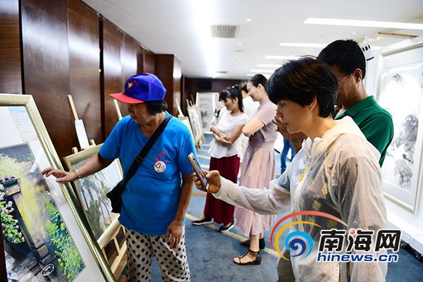 市民在現場參觀名家書畫作品。南海網記者 沙曉峰 攝