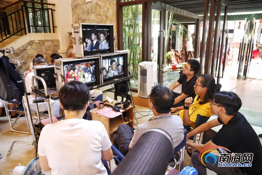 導(dǎo)演、編劇等觀看《我愛(ài)你,祖國(guó)》拍攝情況。南海網(wǎng)記者 姚皓 攝