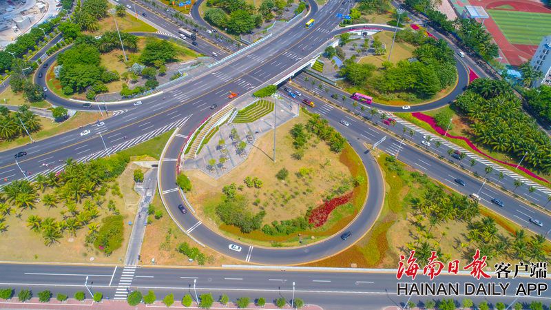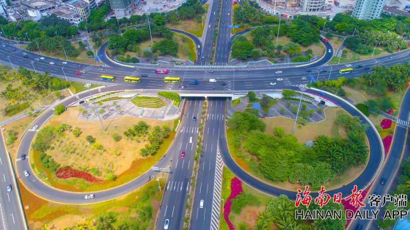2019年4月28日,高空俯瞰??诔袚杞獬鞘薪煌〒矶鹿δ艿暮8⒔还歉陕肪W,凸顯椰城顏值。海南日報記者 張茂 攝