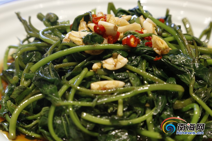 水晶宮粵菜酒樓的堂灼地瓜葉。南海網(wǎng)記者 姚皓 攝